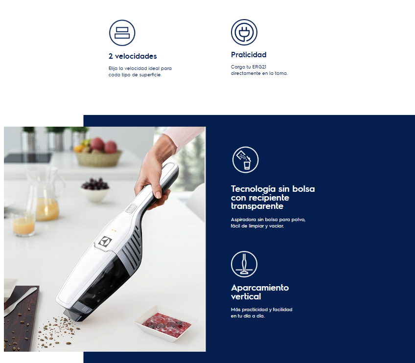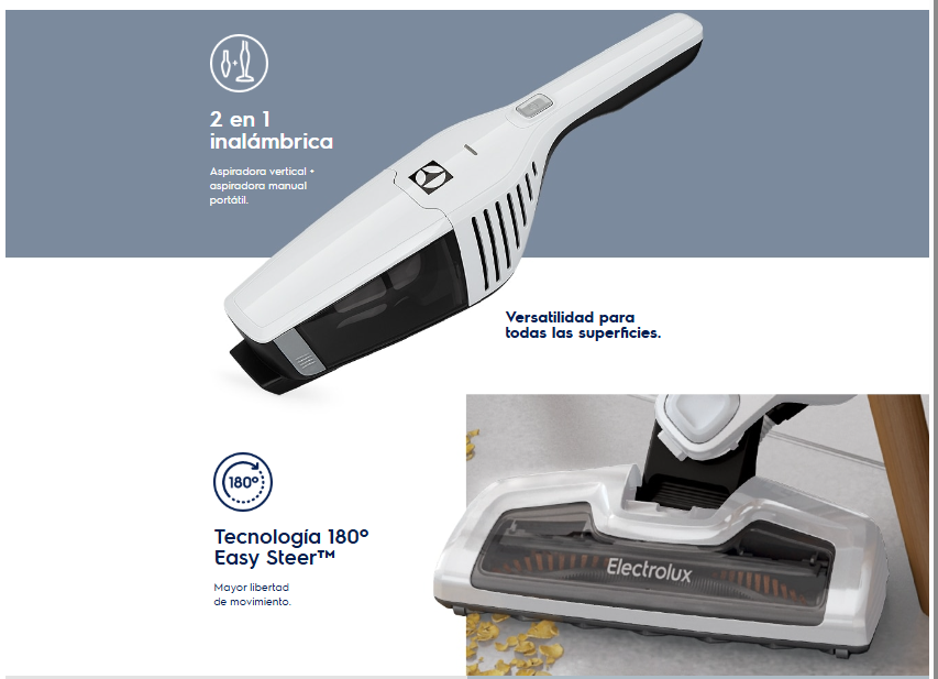 La Electrolux Ergorápido ERGO21 combina potencia, diseño y practicidad en un solo equipo. Su innovador sistema 2 en 1 te permite usarla como aspiradora vertical o de mano, ideal para limpiar desde el suelo hasta los rincones más difíciles 🧹💨.