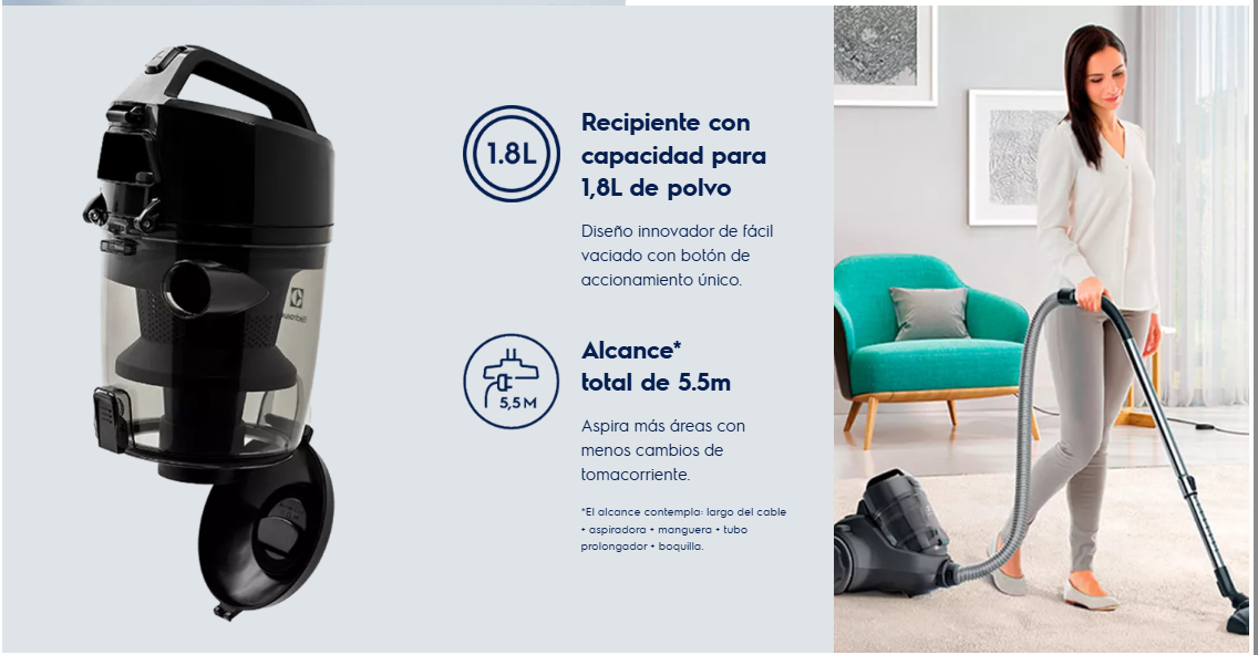 ¡Transforma tu hogar en un espacio limpio y saludable con la Aspiradora Sin Bolsa Electrolux Mystique Gris! 🏠💫 Gracias a su motor de 1600W, tecnología ciclónica DoubleStep y filtro HEPA, elimina hasta el 99,9% de las impurezas del aire 🌬️🦠 para que respires tranquilidad.