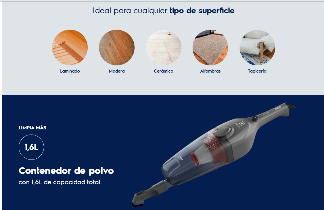 | Tipo | Aspiradora vertical 2 en 1 (vertical y manual) |