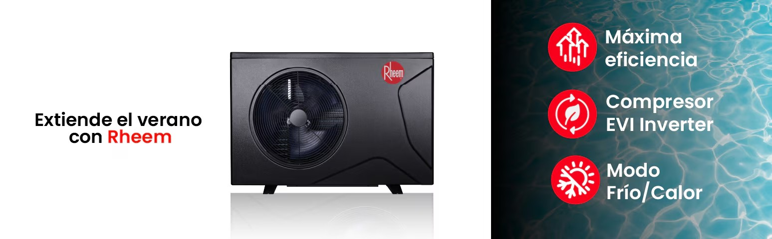 La Bomba de Calor Rheem Crosswind L Inverter transforma tu piscina en un espacio perfecto para disfrutar todo el año 🌴. Su bajo consumo energético, tecnología avanzada y funcionamiento silencioso te permitirán disfrutar del confort y la eficiencia que solo Rheem puede ofrecer.