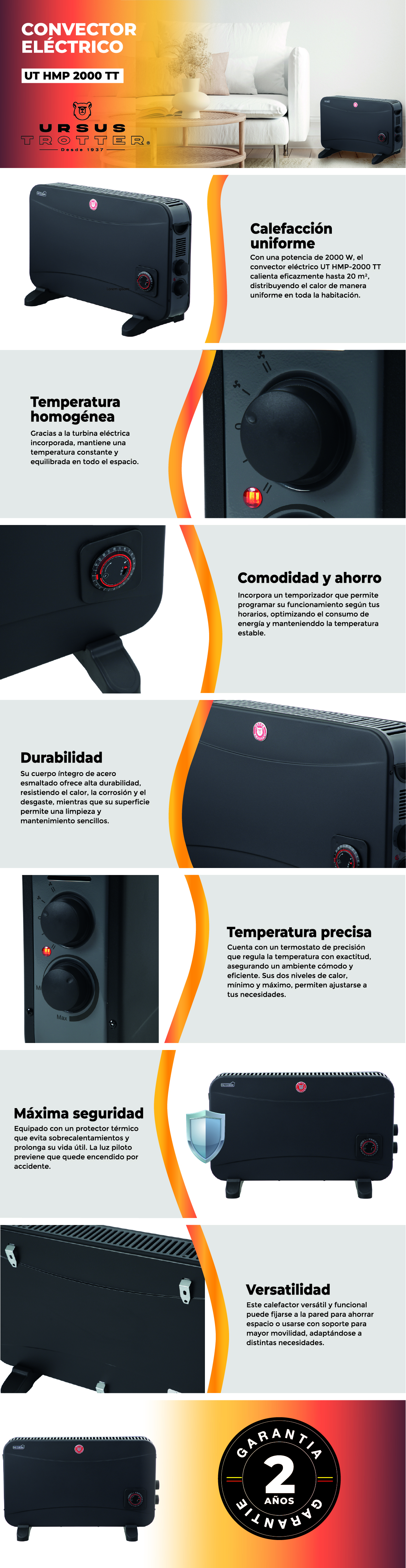 Con el calefactor Ursus Trotter HMP-2000TT, disfruta de un ambiente cálido, seguro y eficiente, con toda la confianza de una marca reconocida y respaldo garantizado. 🧣💼