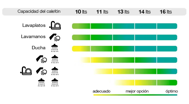 Antes de comprar, verifica el tipo de gas que usa tu hogar. Puede ser gas natural por cañería o gas licuado en cilindros. ¿Cuántas duchas, lavamanos y lavaplatos tienes en casa? La capacidad del calefont dependerá de la cantidad de agua caliente que requieras en casa.