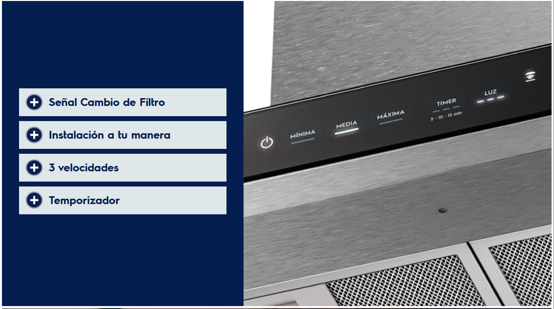 🌈 Perfecta para cocinas modernas que buscan eficiencia, limpieza y un toque decorativo único. Dale a tu espacio el poder de succión que necesita y cocina sin preocupaciones.