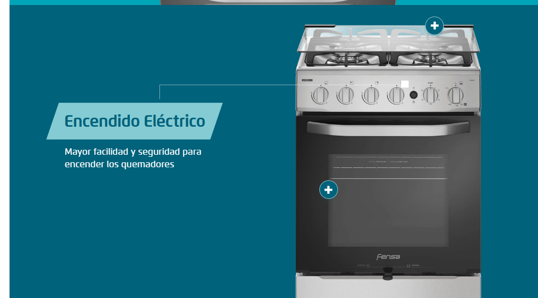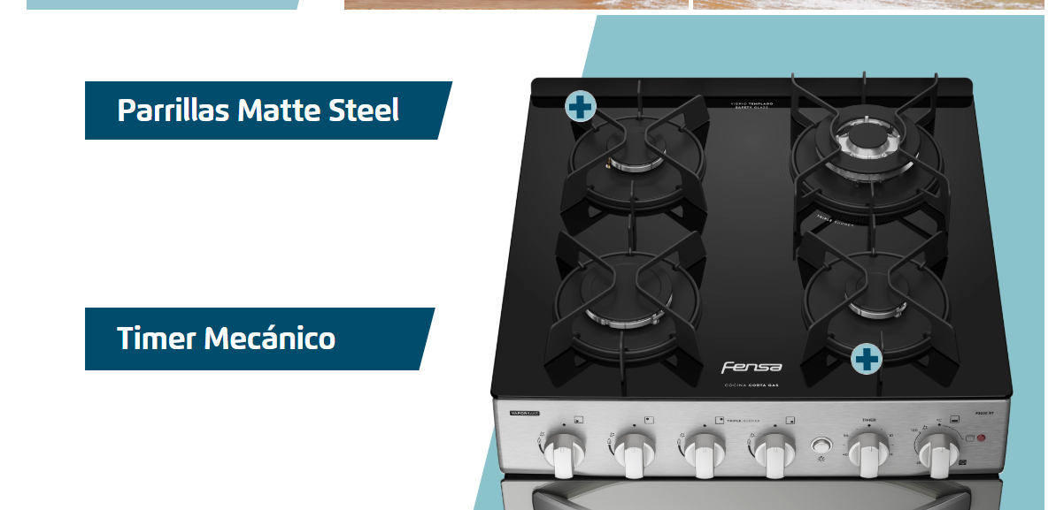 La Cocina a Gas 4 Platos Fensa Experience con VaporBake y Timer es la combinación perfecta entre tecnología, diseño y eficiencia, brindándote la mejor experiencia culinaria cada día. 🌈✨