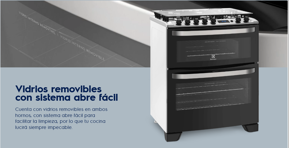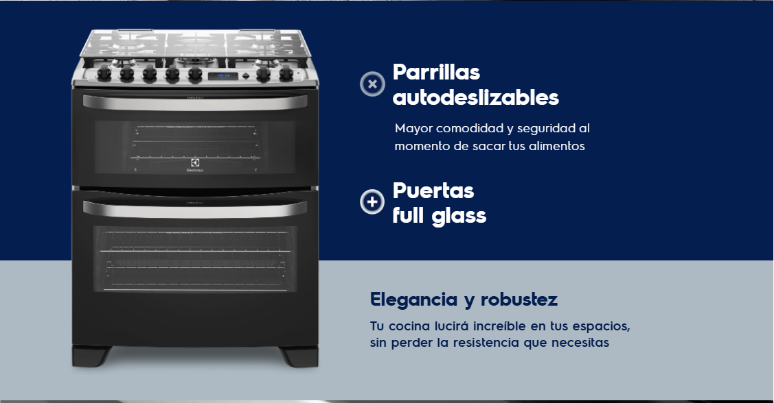COCINA A GAS 5 PLATOS ELECTROLUX EXPERIENCE DOBLE HORNO Y TIMER DIGITAL 76DBA NEGRA