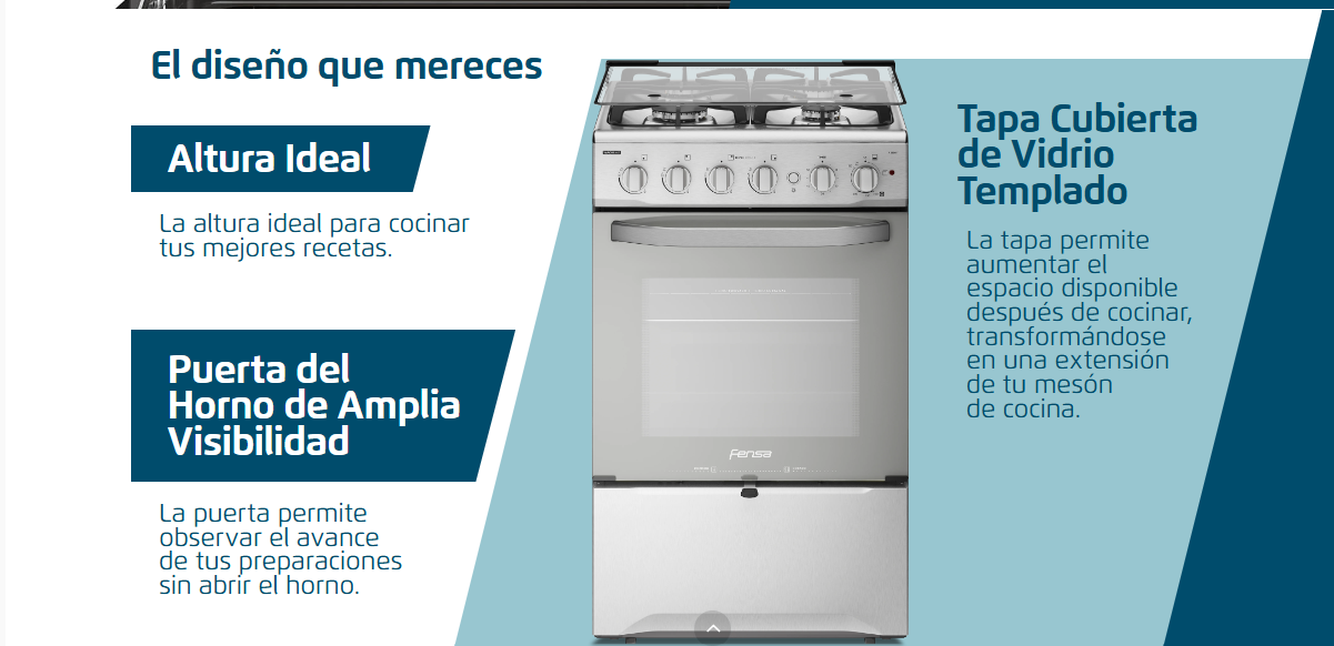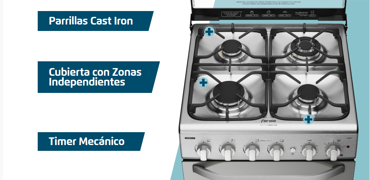 ¡Descubre la experiencia culinaria definitiva con la Cocina a Gas Fensa F 2808 T! 🍳✨ Diseñada para quienes buscan rapidez, potencia y resultados profesionales, esta cocina combina tecnología avanzada, funcionalidad y un diseño elegante en acero inoxidable.