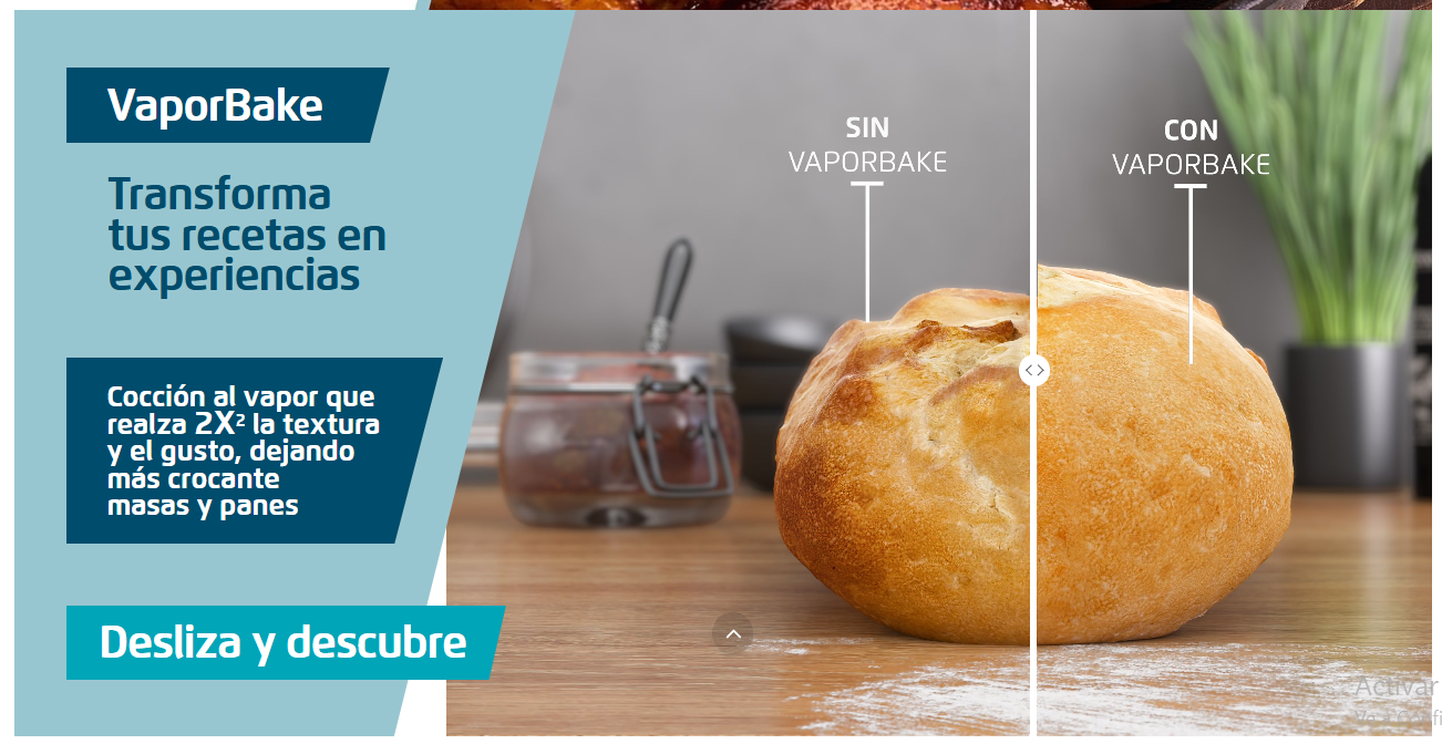 VaporBake 💨: Horneado al vapor que mejora textura, dorado y crocancia de tus recetas.