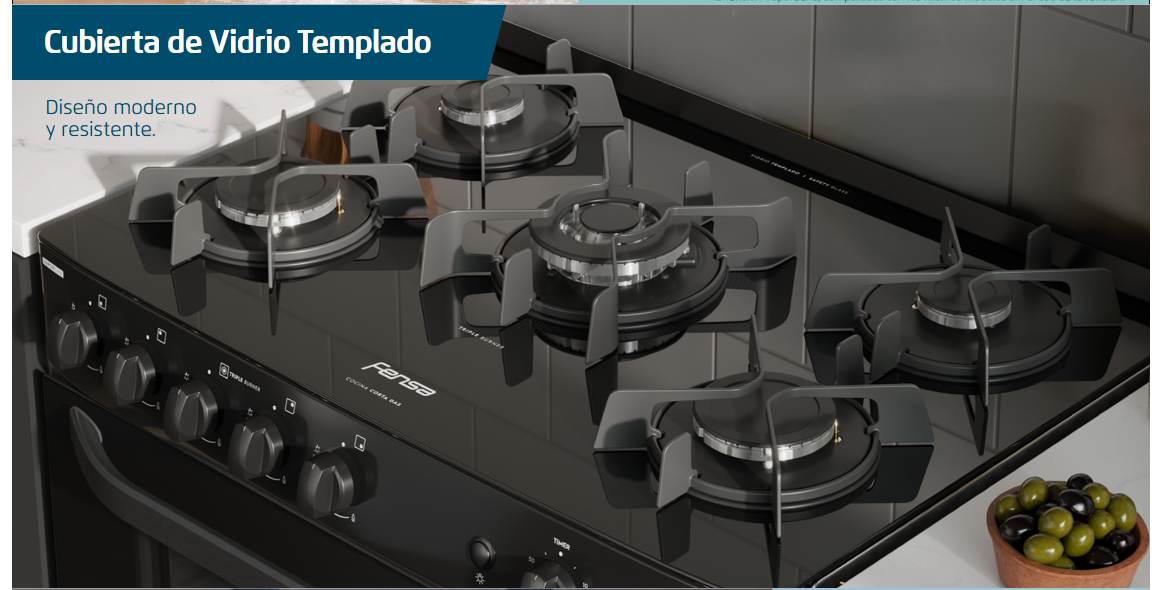 ¡Transforma tu cocina en un espacio de innovación y estilo con la Cocina a Gas Fensa Experience F 6500 T! Su diseño moderno con cubierta de vidrio templado 🖤 no solo aporta elegancia, sino también resistencia y facilidad de limpieza. Ideal para quienes buscan rendimiento profesional y comodidad en casa.