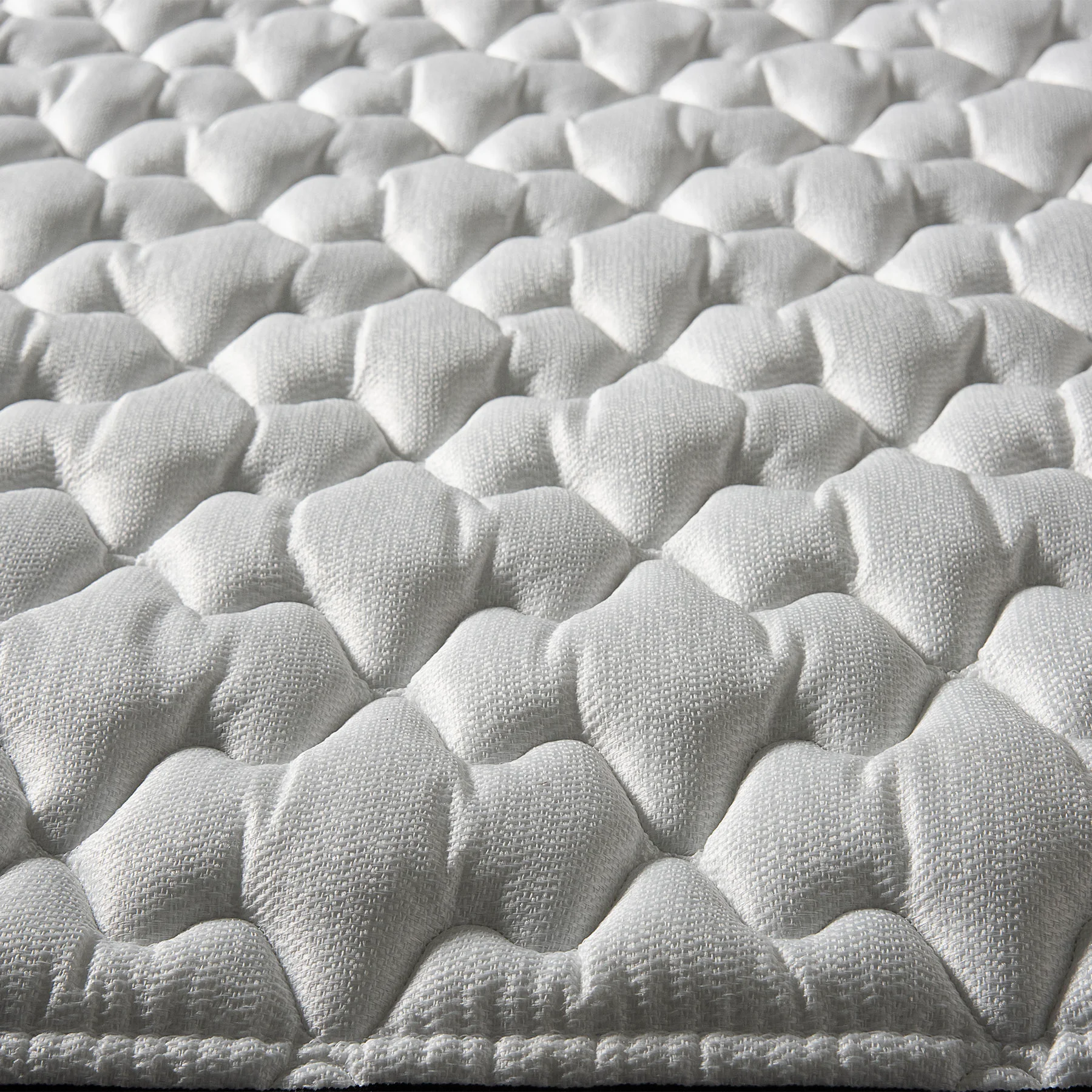 -Tela Jacquard BELGA con tratamientos Sanitized y Fire Retardant. -Napa de fibra poliéster. -Capa fibrotextil termofusionada. -Capa de Poliuretano. -Floating System marco de poliuretano + estructura de resortes Bonnell.