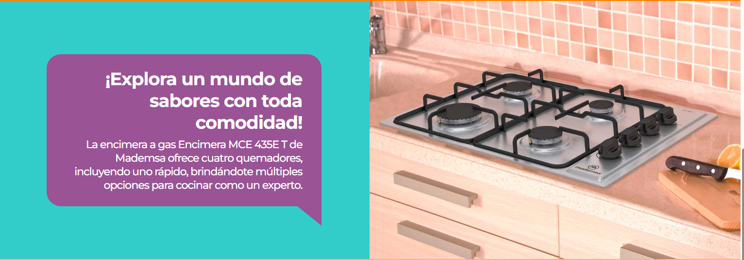 La Encimera a Gas Mademsa MCE 435E T Inox está diseñada para ofrecerte la mejor experiencia culinaria en espacios compactos, sin renunciar al poder y la seguridad que necesitas en tu cocina 🍳. Con sus 43,5 cm de profundidad, se adapta fácilmente a cualquier mueble, entregando comodidad, elegancia y rendimiento superior.