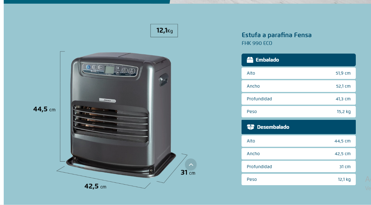 ESTUFA PARAFINA LÁSER FENSA 9 LITROS 5,2KW PANEL DIGITAL, TIMER Y BOTÓN ECO FHK 1050
