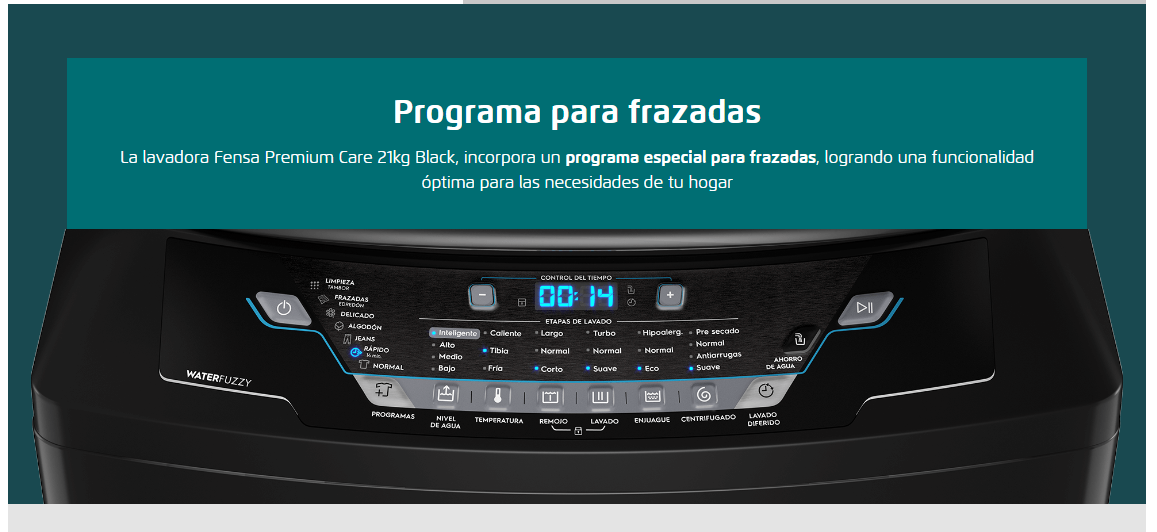 Con Fensa Premium Care 21 kg, cuidar tu ropa y ahorrar agua nunca fue tan fácil. 💚
