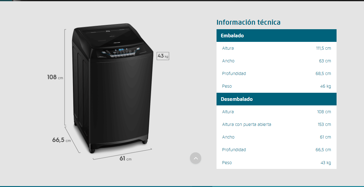 | Programas de lavado | 7 (Limpieza Tambor, Frazadas/Edredón, Delicado, Algodón, Jeans, Rápido 14 min, Normal) |