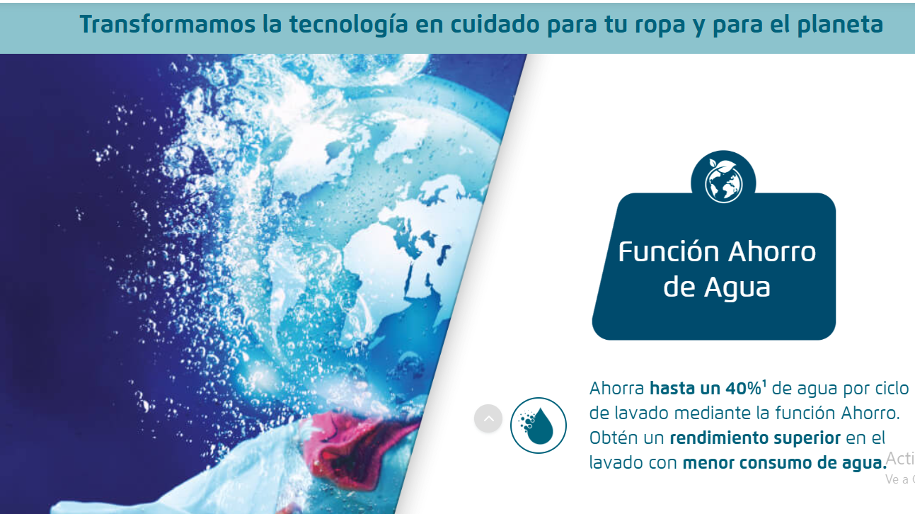 Reduce hasta un 40% del consumo de agua por ciclo¹ sin comprometer la limpieza.