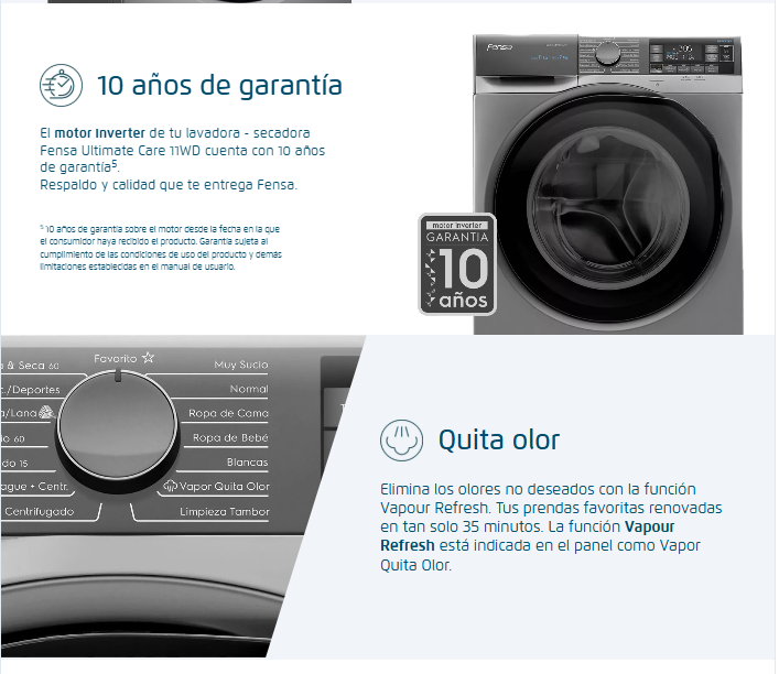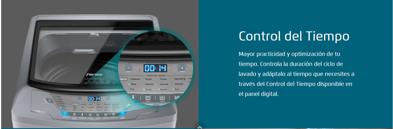 💡 Optimiza tu lavado, ahorra agua y energía, y disfruta de ropa limpia, cuidada y fresca con la Lavadora Automática Fensa 18KG Premium Care 18SZ.