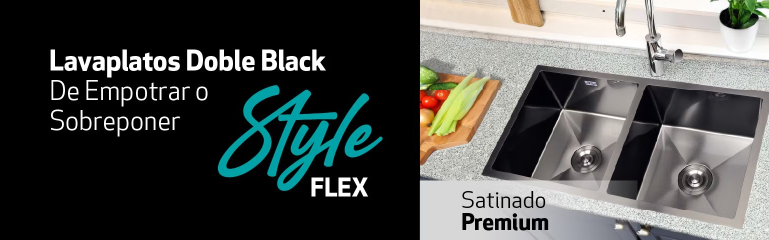 Haz de tu cocina un espacio funcional, moderno y sofisticado con el Lavaplatos Doble Style Flex Black Splendid. Perfecto para quienes valoran la calidad, el diseño y la comodidad. No es solo un lavaplatos, es una inversión en estilo y eficiencia. 🖤