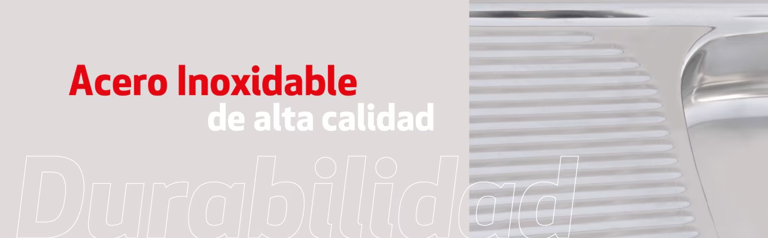 | Características Principales | Lavaplatos de acero inoxidable máxima calidad y durabilidad. • Vértices soldados y doble pliegue en los contornos, evita cortes en la instalación. • Sistema integrado anti-ruido. • Ondas del secador más profundas, facilitan la limpieza y evitan la corrosión. |