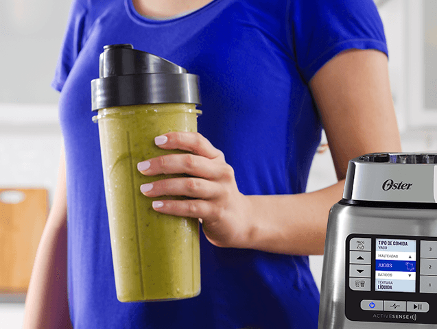 La licuadora Oster® con tecnología ActiveSense™ detecta los ingredientes ajustando la velocidad y dirección de la cuchilla y el tiempo de licuadora para lograr resultados perfectos.