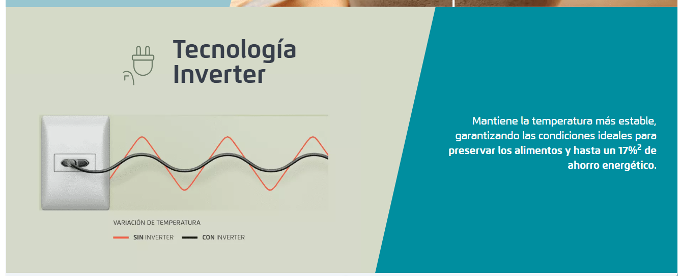 Tecnología Inverter ⚡: Ahorra hasta un 17% de energía manteniendo la temperatura del motor estable.