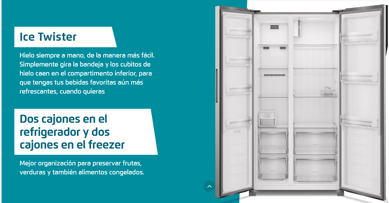 IceTwister ❄️: Hielo siempre a mano; solo gira la bandeja y cae al compartimento inferior.