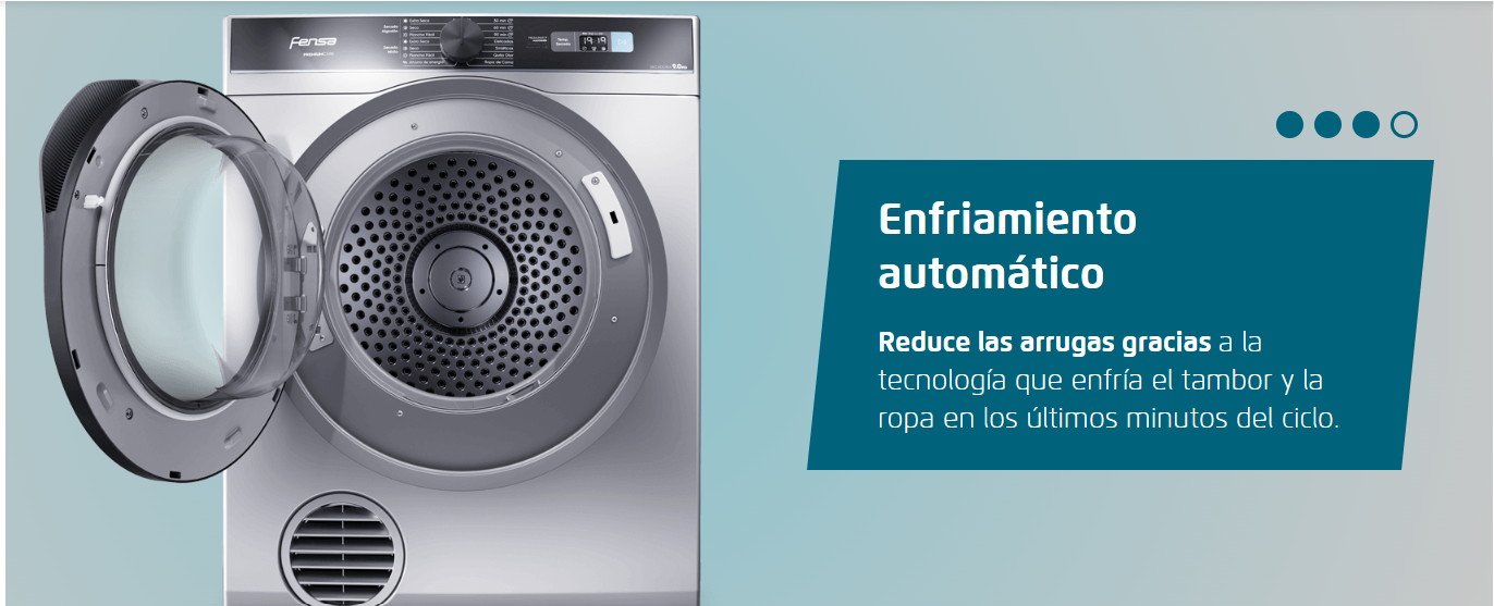 La Secadora Fensa Premium Care Pro 9D 9kg está diseñada para ofrecer máximo rendimiento, eficiencia y cuidado superior de tus prendas. Su avanzada Tecnología AutoSense mide la temperatura y humedad de la ropa durante el ciclo, ajustando automáticamente el tiempo y la intensidad del secado 🔍👕.