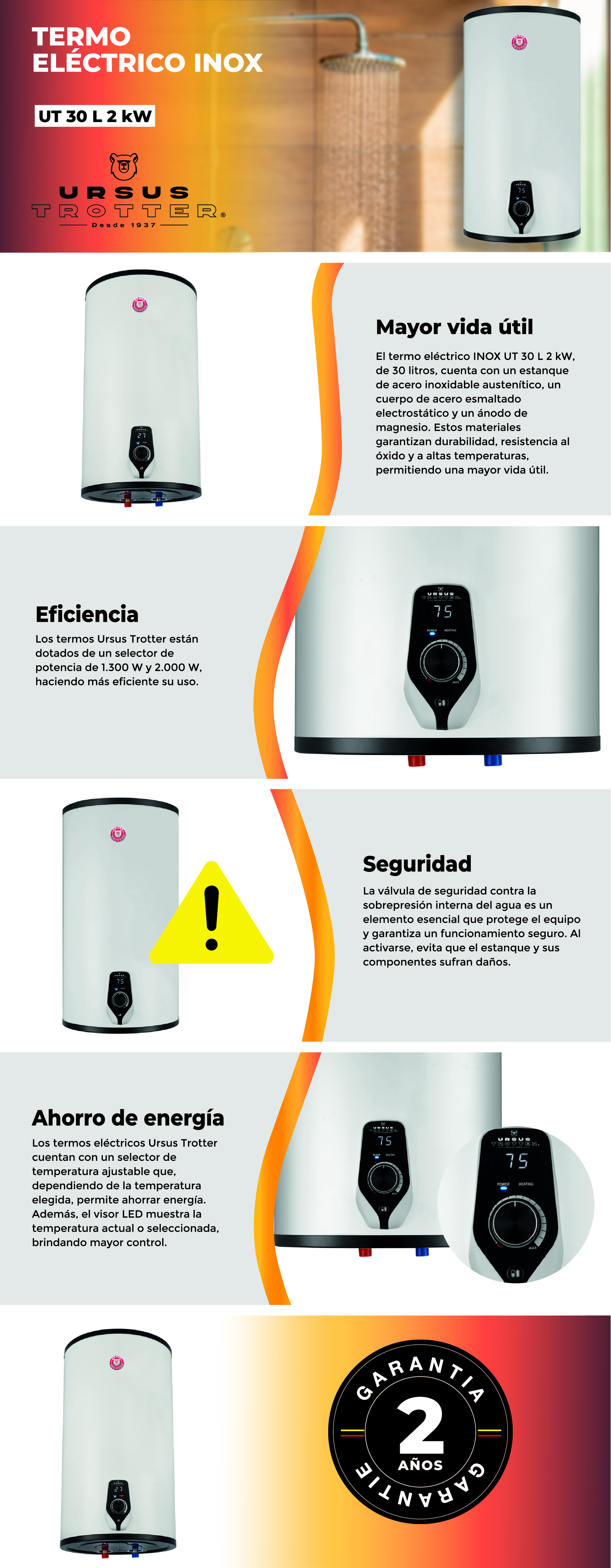 ¿Buscas un termo eléctrico confiable, duradero y con diseño moderno? 💡 El Ursus Trotter UT 30L de 2KW es ideal para hogares que necesitan eficiencia energética, resistencia al paso del tiempo y un uso fácil e intuitivo. Su estanque de acero inoxidable y su panel digital LED lo convierten en la opción perfecta para quienes valoran la calidad y la tecnología. 🛁💧