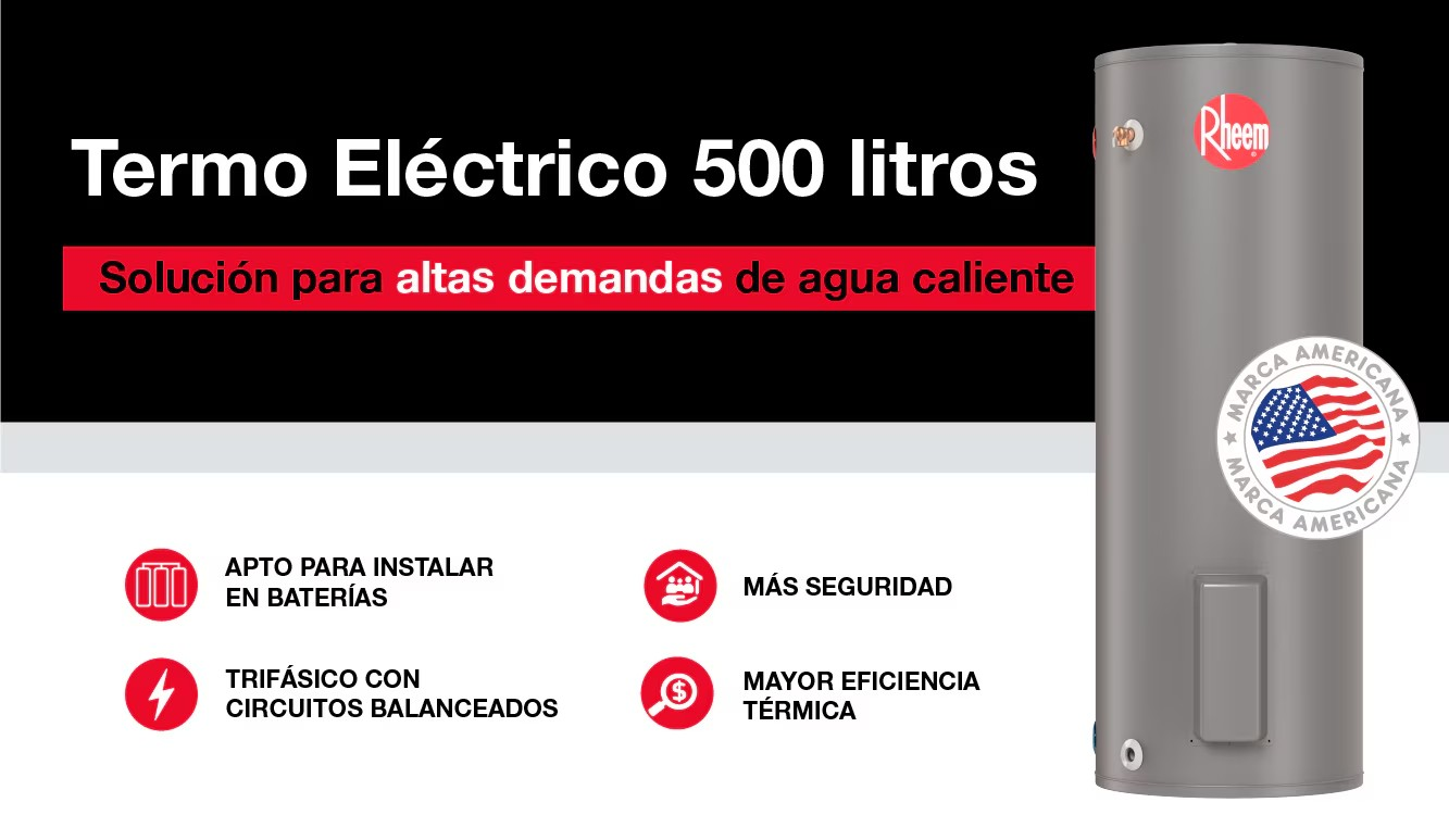 ¡Solución ideal para alta demanda de agua caliente en hoteles, restaurantes, gimnasios, hospitales y más! ✅ El Termo Eléctrico de Piso Rheem 500 litros Trifásico está diseñado para ofrecer agua caliente constante y eficiente, incluso en los momentos de mayor consumo. Perfecto para instalaciones comerciales e industriales, este termo asegura comodidad, ahorro energético y durabilidad.