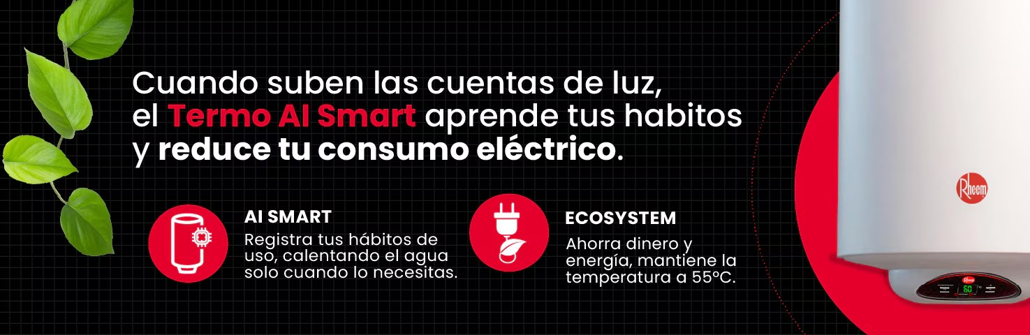 Disfruta de agua caliente siempre lista y al instante con el Termo Eléctrico Mural Rheem de 50 Litros 🤖💦. Gracias a su tecnología AI Smart, este termo aprende tus rutinas en solo 7 días, precalentando el agua justo cuando la necesitas. Además, su función Ecosystem mantiene automáticamente la temperatura a 55 °C, ofreciendo confort y ahorro energético de hasta un 30% ⚡♻️.