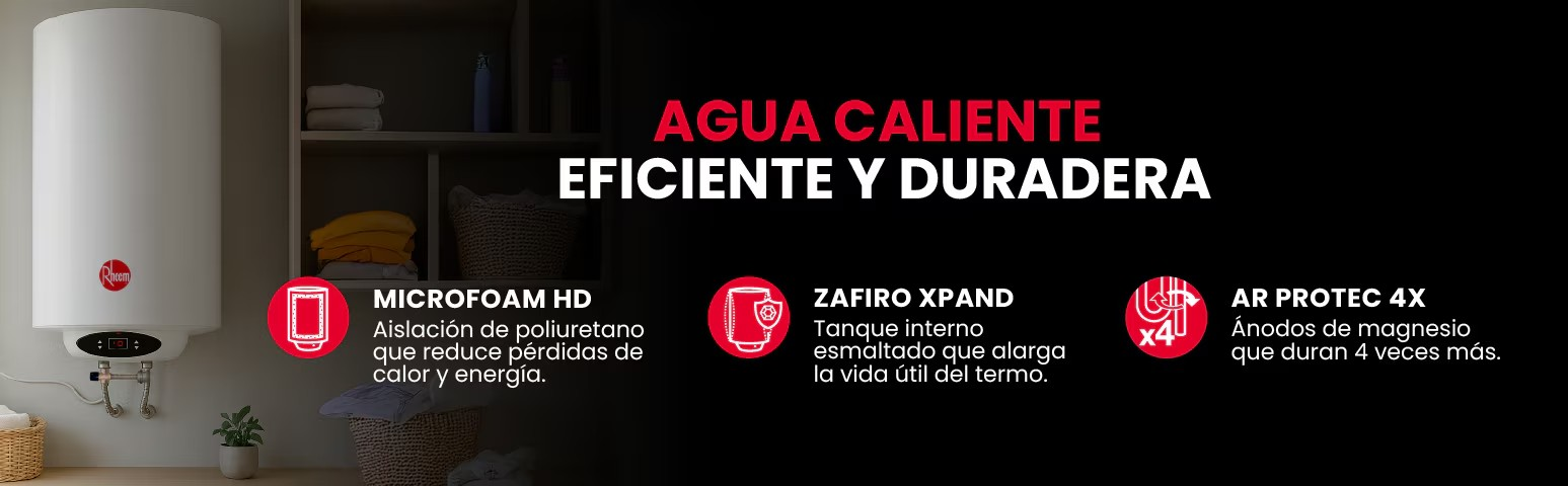 ✅ Garantía Rheem – 5 años en el tanque interno y 3 años en componentes.