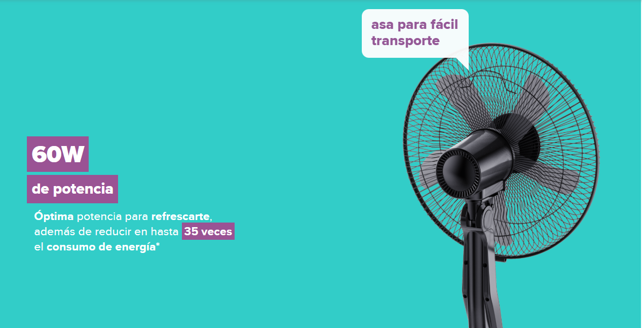 El Ventilador de Pedestal Mademsa SFM2 te ofrece una experiencia de frescor personalizada, silenciosa y eficiente 🌟. Con 60W de potencia, este ventilador garantiza un ambiente fresco y agradable mientras reduce el consumo de energía hasta 39 veces¹ comparado con un aire acondicionado tradicional.