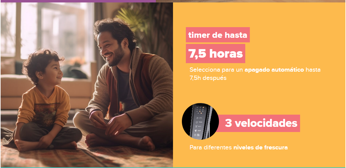 🌬️ Flujo de aire amplio y regulable para mayor bienestar.