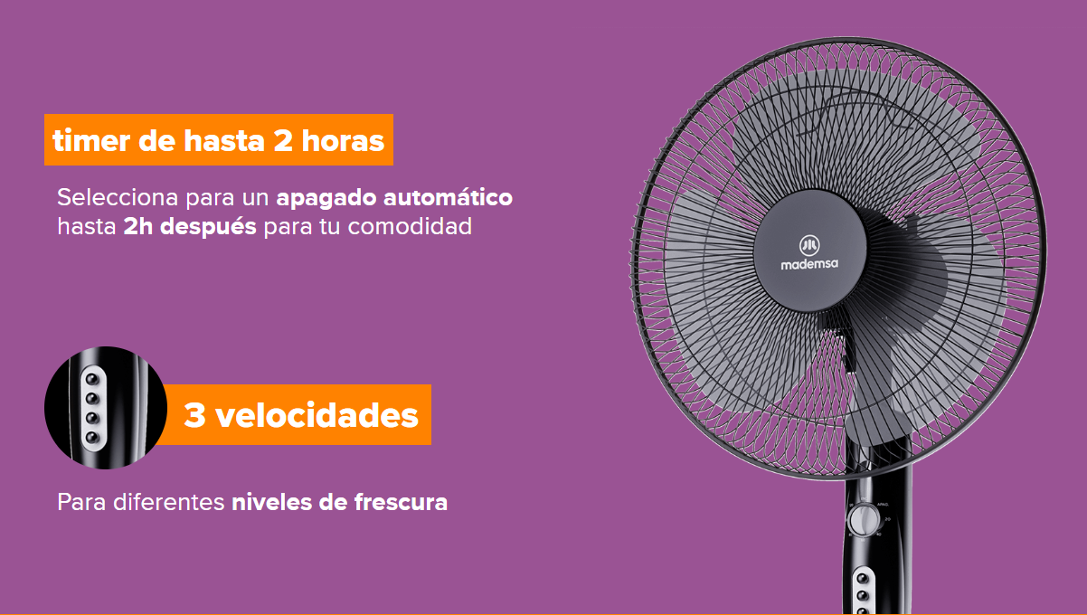 ¡Refresca tu hogar u oficina con estilo y eficiencia! El Ventilador Pedestal Mademsa SF160 combina potencia, diseño y tecnología para mantener tu espacio fresco y confortable durante los días más calurosos.