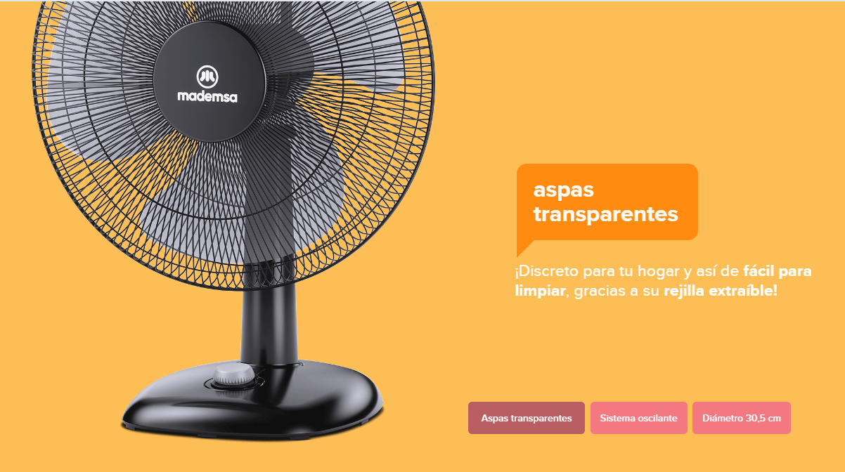 ¡Mantén tu hogar fresco y cómodo con el Ventilador Sobremesa Mademsa DFM12! Ideal para cualquier espacio, combina eficiencia, bajo consumo y silencio, todo en un diseño práctico y moderno.